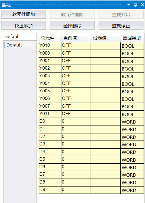 点击“工具”->监控,或者直接点击电脑图标,即可添加要监视的元件,查看并修改寄存器的值。