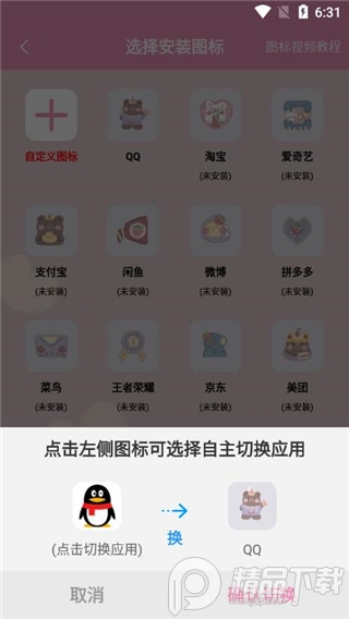 5、换完之后,就可以开始切换你的图标;
