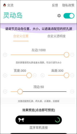 1、根据每个人手机屏幕的尺寸不同,对灵动岛的位置和宽度高度进行调整