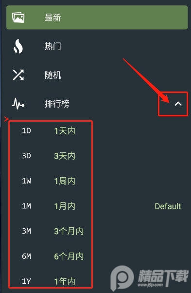 排行榜是wallhaven网站的热门总榜单,你可以如上图一样,点击“折叠”图标展开选择,可以: