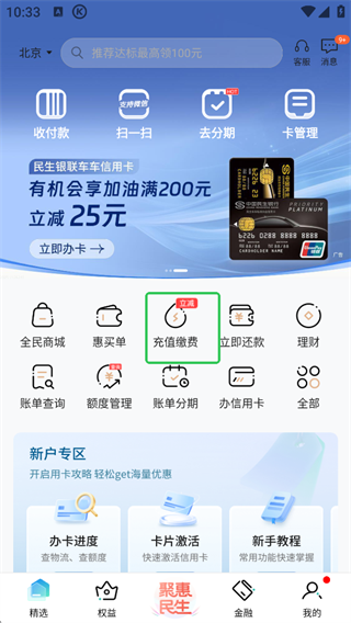 在线办卡:您可通过民生信用卡全民生活APP在线提交申请,海量产品,最快3秒核卡。