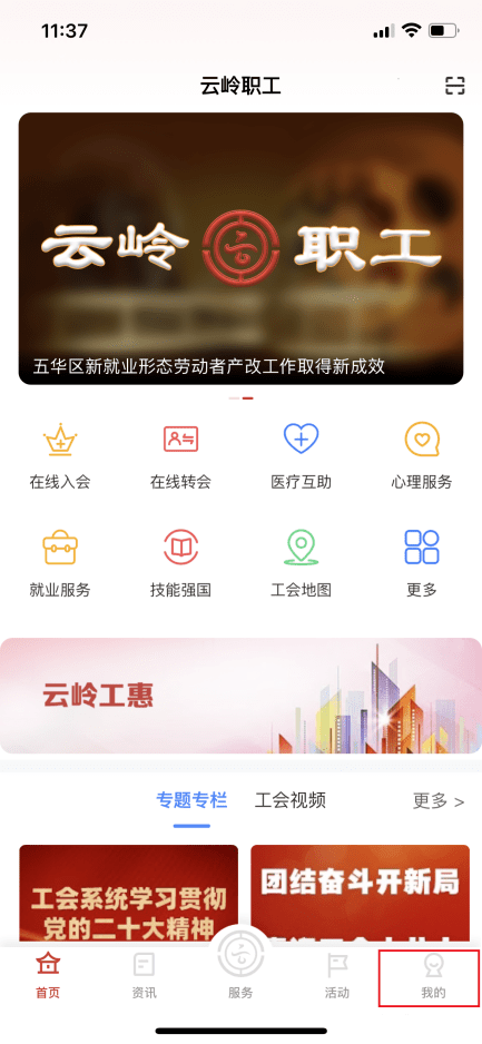 1.打开“云岭职工”,点击“我的”界面,如图所示。