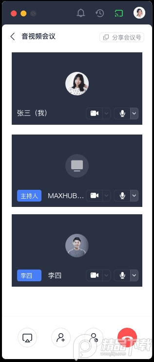 目前国内市场上绝大部分会议平板,需要额外搭配购买第三方的视频会议软硬件,才能支持远程会议。一方面增加了成本,另一方面部署麻烦且需要解决兼容性的问题。而MAXHUB X3 在视频会议方面,带给了我们非常大的惊喜。点击MAXHUB首页云会议,即可一键发起视频会议,既可以视频,又可以同时共享屏幕,其他端如手机、电脑等下载MAXHUB云会议APP就能加入会议。