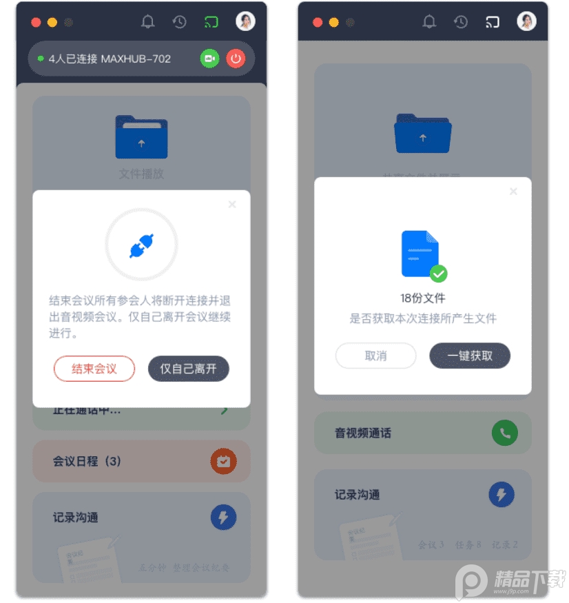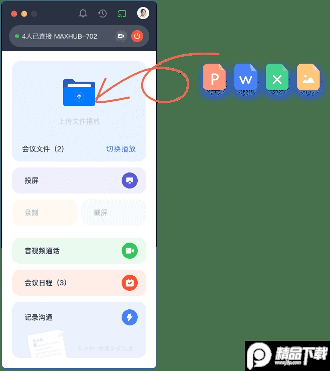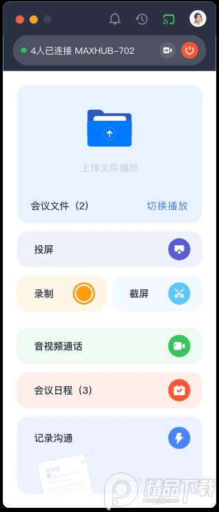 4、远程控制MAXHUB会议平板,支持一键投屏、共享文件、一键截屏、录制会议、远程开会、获取文件。