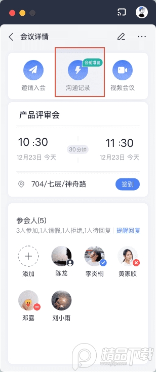 点击开始【沟通记录-会前准备】,即可将文件或者会议目标等共享至该场会议的沟通主题当中,方便参会人提前进行会议资料共识,提升会中讨论效率。