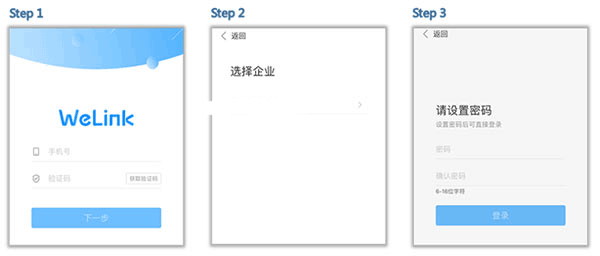 选择您的企业后,设置您的登录密码,即可登录WeLink。