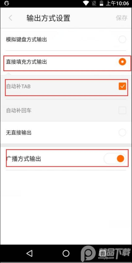 3、进入“输出方式设置”后,根据下面截图选择勾选项,然后保存即可,如下图: