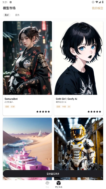 数百款流行的开源或独家模型,你可以轻松体验,不同的动漫,真人摄影,手办,小物,在模型能力加持下,你可以更容易的跑出让人惊叹的好图,你还可以在软件直接上传图片来训练属于自己的定制模型,并发布在模型市场,让更多人来体验!