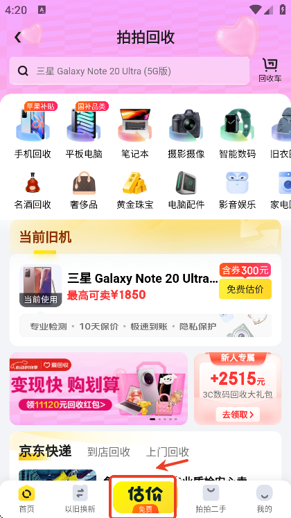 玩家可以点击“估价”,免费让官方预估自己的二手产品出售价格