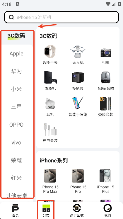 登录后,用户们可以在分类页面挑选自己喜欢的二手手机和3C数码产品