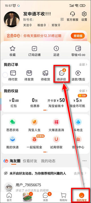 2、另外,如果你现在还有待评价的订单,也可以直接从待评价入口进入淘宝评价界面