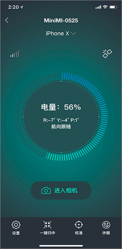 4.这里需要强调很关键的一点,那就是连接后如稳定器不平衡则需要手动校准,设备连接后点击页面中的图片进入校准页面。