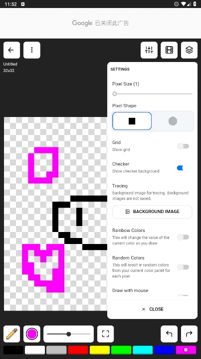 2、功能性:Pixilart的功能齐全,能够满足不同用户的日常画画和创作需求。用户可以创建尺寸在32×32 px和700×700 px之间的各种像素图形和绘图,用于制作图标、艺术画、动图、像素图片等。
