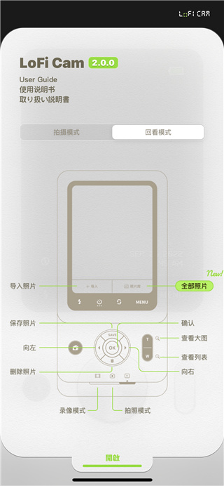 1、打开LoFi Cam相机可查看使用说明书;