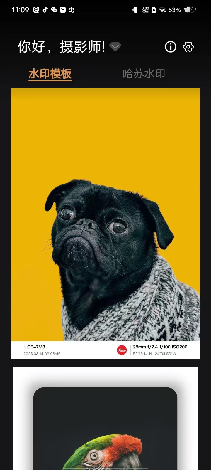 2、软件一共分为两个板块,一个是水印板块,另外一个是哈苏板块,用户可以依据自身喜好进行选择;