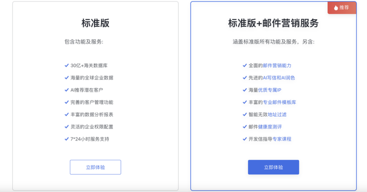 网易外贸通的收费价格主要根据软件的功能版本来确定的。网易外贸通提供了多种服务套餐,有标准版、标准版+8万邮件营销、标准版+18万邮件营销、标准版+39万邮件营销等,每个套餐的功能都不同,相应的收费也有所区别,大概几千到一万多不等。用户可以根据自己的需求和预算选择,如果需要优惠,建议联系我们的选型顾问,进行一对一沟通或者进群咨询用过的人。
