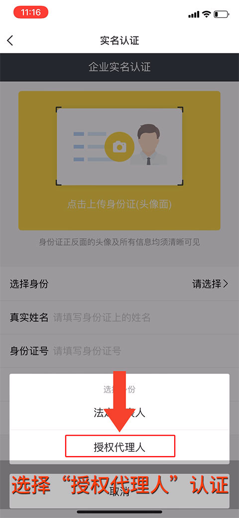 4、选择“授权代理人”认证。