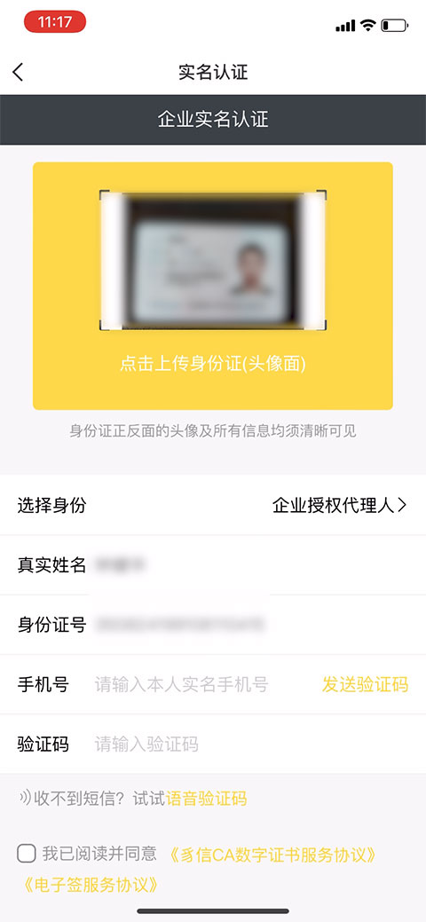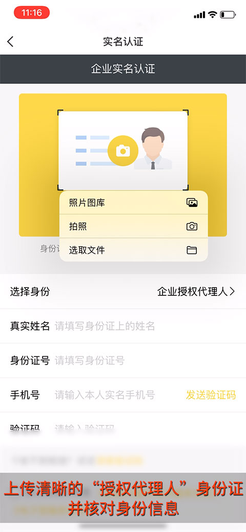 5、上传清晰的“授权代理人”身份证。