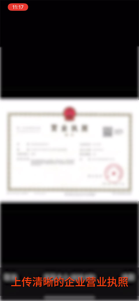 9、上传清晰的企业营业执照。