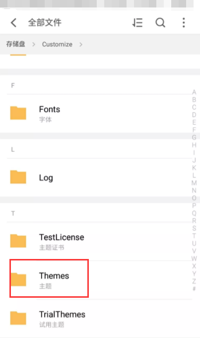 4、打开之后就能看到手机的主题文件,如下图所示。