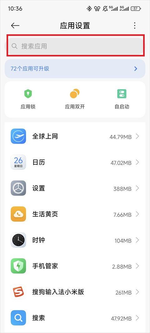 第2步:在应用设置页面,找到并打开应用管理页面,在搜索栏输入WPS,会出现小米文档查看器字样。