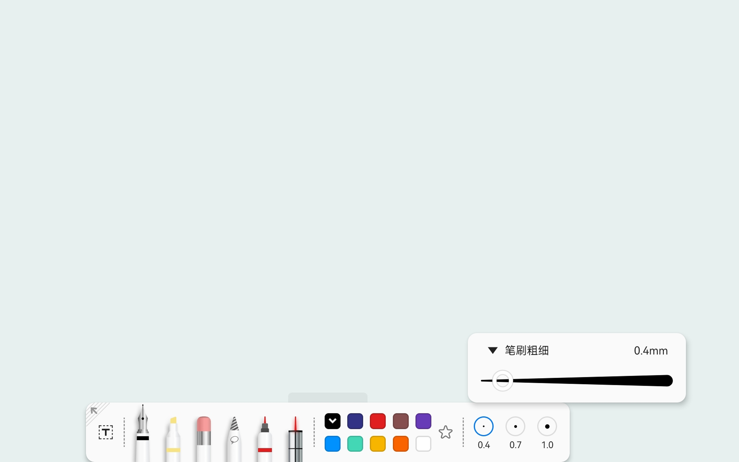 您二次点击笔刷粗细后,可以看到笔刷粗细的调节滑动条,您可以通过滑动来调节选择更多粗细。