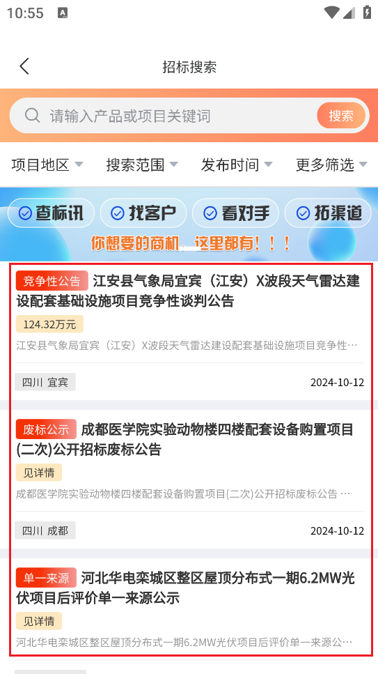 4、确保了信息的即时性与准确性,无论用户身处何地,都能快速获取最新的招投标动态。