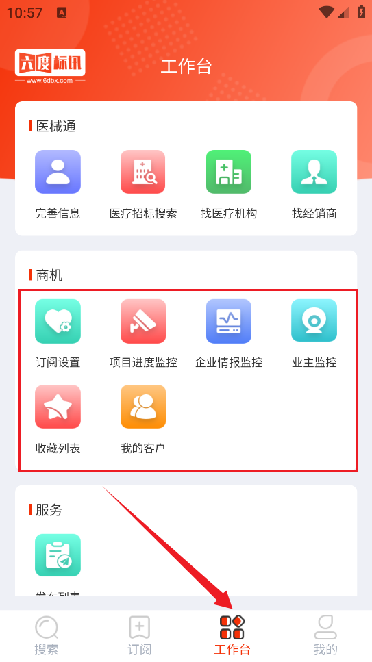6、此外,工作台汇总还设置了诸多特色功能,如图所示,可以设置订阅,查看项目进度,企业情报监控等。
