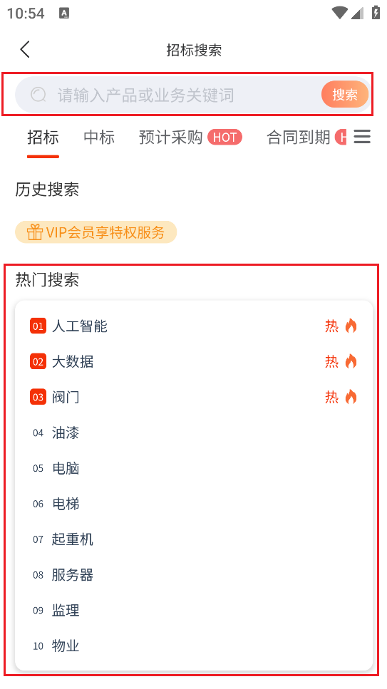 3、或者通过顶部的搜索框输入产品或业务关键词进行搜索。