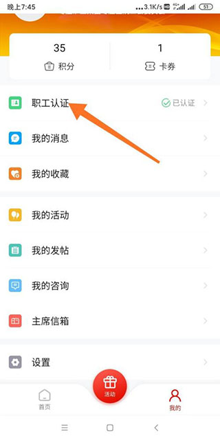 3、再点击左上角的按钮【职工认证】。