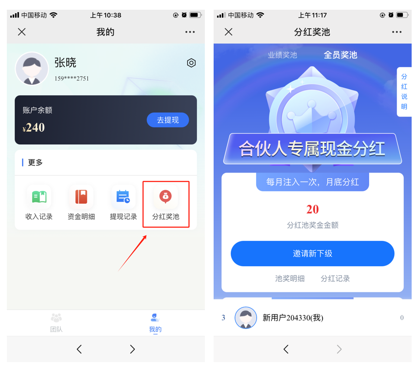 分红发放时间:每月1号会对上月奖池进行分红结算,根据相关规则将分红金额发放到各合伙人新华梦工场账户中,各合伙人可自行提现。